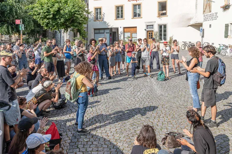 Le site du Quai du Bas 30, Bienne. Les clôtures enlevées entre la gare et le lac. Un site qui est ouvert. Perméable et à bas seuil. Animé …